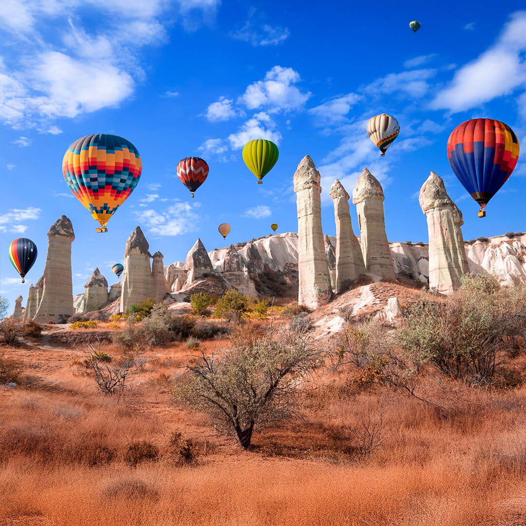 - Cappadocia: Göreme Open Air Museum, Underground City, Fairy Chimneys