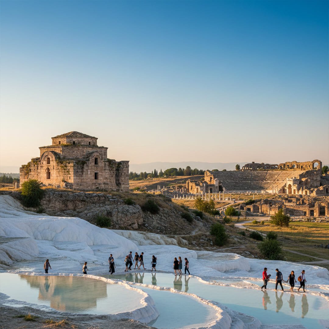 in Hierapolis, the unique thermal pools of Pamukkale, and visits to the ancient cities of Miletus